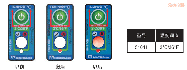 TempDot™ Minus標(biāo)簽需存儲(chǔ)在室溫下,并且必須在反應(yīng)溫度 以上被激活。激活是通過用手指推壓,標(biāo)簽 底部的小窗口變?yōu)榧t色或部分變紅色以指示激活,,但激活后并不需要保持紅色。當(dāng)使用了上述反應(yīng)溫度 標(biāo)簽的產(chǎn)品暴露于閾值以下的溫度,白色的大窗口變?yōu)榧t色或部分紅色,在反應(yīng)溫度 以上將溫度標(biāo)簽用 于產(chǎn)品。如果一個(gè)產(chǎn)品暴露于閾值以下的溫度,白色的大窗口變紅色或部分紅色,TempDot™ Minus標(biāo)簽 提供即時(shí)的視覺指示。為達(dá)到最佳效果,標(biāo)簽應(yīng)保持垂直位置,其反應(yīng)期間,紅色箭頭須指向上方。