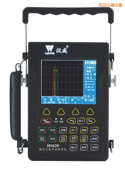 HS620數字式超聲波檢測儀 技術參數: 數字硬件采樣頻率:10bit/200MHz 脈沖強度:600V 阻抗匹配:200Ω、500Ω二檔可選 工作方式:單晶探傷、雙晶探傷 掃描范圍:零界面入射~ 12000mm鋼縱波 重復頻率:15Hz、30Hz、60Hz、100Hz、200Hz、300Hz、400Hz、500Hz、400Hz 檢波方式:全檢波、正、負檢波、射頻波顯示 工作頻率:(0.5-15/0.5-4/2-8)MHz 衰減器精度:< ±1dB/12dB 增益調節(jié):110dB(0.1dB、2dB、6dB步進,武漢漢威超聲波探傷儀,全自動調節(jié)) 聲速范圍:(100 ~ 20000)m/s 動態(tài)范圍:≥ 30dB 垂直線性誤差:≤ 3% 水平線性誤差:≤ 0.1% 分辨力:>40dB(5N14) 靈敏度余量:>60dB(深200mmΦ2平底孔) 數字抑制:(0 ~ 80)%,不影響線性與增益 電源、電壓:直流(DC)7.2V±10%;交流(AC)220V±10% 工作時間:連續(xù)工作6小時以上(鋰電池供電) 環(huán)境溫度:(-10 ~ 40)℃(參考值) 相對濕度:(20 ~ 95)% RH 外型尺寸:205 x 138 x 65(mm)