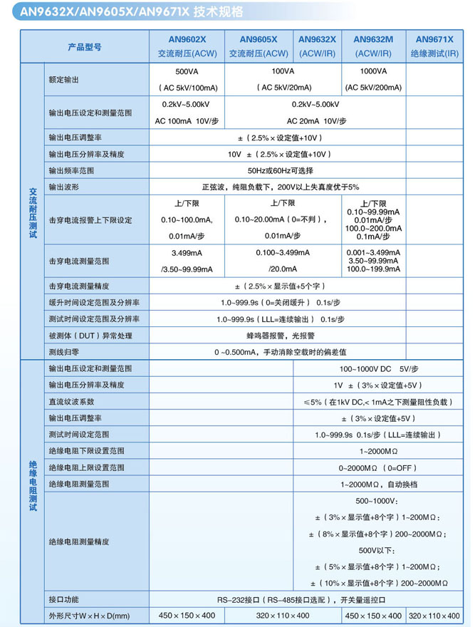 • 樂(lè)山絕緣耐壓測(cè)試儀 AN9632M/AN9632X/AN9602X/AN9605X/AN9671X