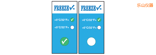 TempDot FreezeCheck標簽,,型號54000,,用來表示溫度低于0°C。如果溫度低于0°C,,標簽不可逆轉(zhuǎn)地發(fā)生變化,,變成白色,,勾形標記消失。 冷凍檢查標簽用來指示溫度低于0°C. 當溫度下降到低于臨界點, 指示劑不可逆轉(zhuǎn)的改變從清晰到白色并且綠色合格標志不再顯示。