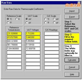 可輸入或?qū)胄?zhǔn)的電阻或電壓原始數(shù)據(jù)。TableWare