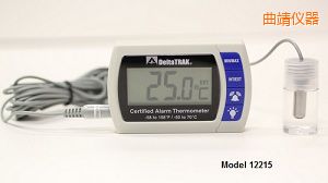 認證的報警溫度計, 型號 12215, 是一個帶有內(nèi)外部傳感器、 最小/最大內(nèi)存、 大型易讀的液晶屏和高/低報警設置雙通道溫度計。內(nèi)部傳感器可測量大氣溫度,外部傳感器可監(jiān)測冰柜、 冰箱、 或冷東陳列柜內(nèi)的溫度。外部傳感器有 3 米長的電纜、 不銹鋼鈍頭封裝在丙二醇塑料瓶中,,這個解決方案是公認為安全的。這種封閉式的方法防止了假報警,因為探針不受正常頻繁使用門關開的急劇波動的情況下的溫度 測量。此溫度計模仿類似于存儲在冰箱和冷柜藥房和實驗室中的常見液體介質(zhì)中的溫度讀數(shù)。除了醫(yī)藥中的應用,,溫度計也可在冷凍展示柜、 冰箱、 或冰柜等的食品應用中 。