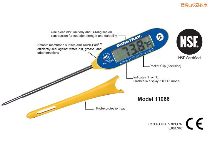 FlashCheck 大型顯示器細端探頭溫度計,日本橫河溫度計,探頭的特性是理想的測量“薄質”食物如肉餡,溫度計的測量原理,雞肉和魚排工具(依照FDA食物手冊4-302.12(B))。溫度計是在精確的標準下設計和制造并且滿足商業(yè)和專業(yè)的使用規(guī)格。