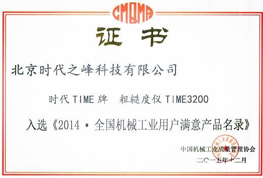 祝賀:時代TIME牌 粗糙度儀TIME3200入選《2014▪全國機(jī)械工業(yè)用戶滿意產(chǎn)品名錄》