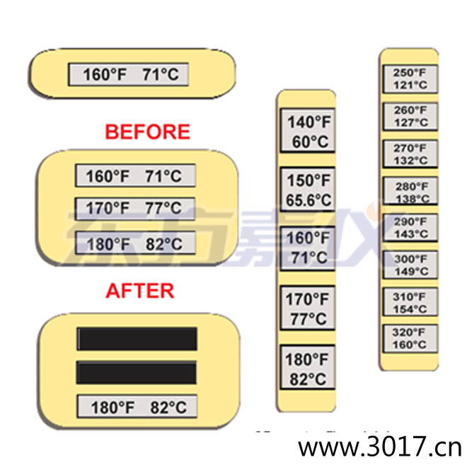 當(dāng)閾定的每一步溫度達(dá)到時(shí),,產(chǎn)生不可逆轉(zhuǎn)的黑顏色。這些標(biāo)簽可直接貼在清潔產(chǎn)品或設(shè)備的內(nèi)外表面。