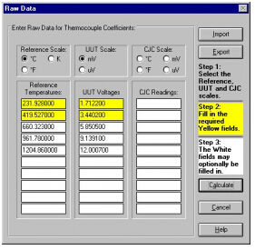 您了解了 MET/TEMP II 軟件的優(yōu)勢,,但未訂購具有 RS-232 端口的福祿克公司計量校準(zhǔn)部的儀器,,或者可能已錯誤地購買了能力欠佳的同類產(chǎn)品。 您不必沮喪,,因為我們已經(jīng)為您提供了補(bǔ)救方法!我們的 TableWare 軟件包除了無法與 MET/TEMP II 數(shù)據(jù)庫連接,,可以完成 MET/TEMP II 中 Coefficients 和 Tables 實用程序能完成的一切操作。TableWare 是計算和生成數(shù)據(jù)的軟件包,,且使用手動輸入的數(shù)據(jù)。該軟件包更會節(jié)省您在計算上花費(fèi)的時間和金錢,,因此是個絕好的選擇。 TableWare 可計算 RTD、熱敏電阻和熱電偶的系數(shù)。它使用 ITS-90、IPTS-68、Callendar-Van Dusen 和多項式方程。TableWare 還可生成溫度對電阻、溫度比較率或溫度對熱電勢的對比表。 可輸入或?qū)胄?zhǔn)的電阻或電壓原始數(shù)據(jù)。TableWare 會生成系數(shù)、計算余值,,并生成有用的表格。 表格和系數(shù)可導(dǎo)出為文本文件,,以便在其他軟件包內(nèi)進(jìn)行分析。 TableWare 還可以使用能夠手動輸入的系數(shù)生成表格。不需要原始數(shù)據(jù)!